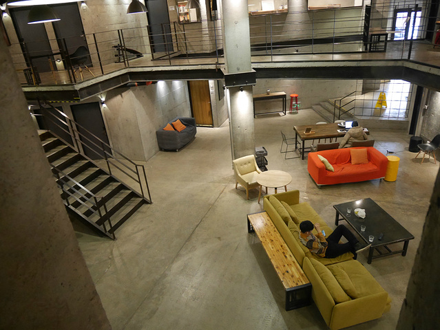 安静大气是对他的最初印象,大厅很宽敞,装修风格有些工业风,被同伴定义为简陋,我却喜欢的不得了。墙面与地面颜色比较深沉,水泥色,点缀了亮丽的沙发或者沙发靠背,依旧觉得想要沉静下来。