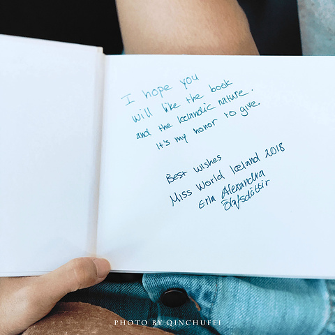 书架上有部分书籍是世界小姐捐赠的,随手拿起一本关于 冰岛 的书,打开硬皮后的内页,就有捐赠人亲笔写的赠言,这不仅仅是一本书,还是一本带有不同个人故事的书。