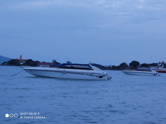 早上起的很早,在酒店前的沙滩上一个人都没有,我就下了台阶在沙滩上散步,海面上三三两两漂浮着游艇。