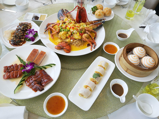 重头戏来咯!(前方高能,没吃饭的童鞋请做好准备)上一次去的时候和朋友一共7个人,点了招牌的波士顿龙虾芝士意面、烧味拼盘以及各种经典的粤式点心,满满一桌,超满足的有没有!