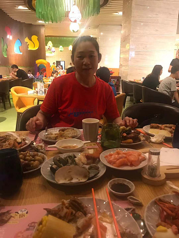因为买的套餐里带了一晚上的自助餐,我选在的今天晚上,因为昨天看大马戏,吃自助餐太赶了。大概六点半,我们回酒店了,回酒店还要冲个凉,换件衣服,自助餐不能穿浴袍去吃。