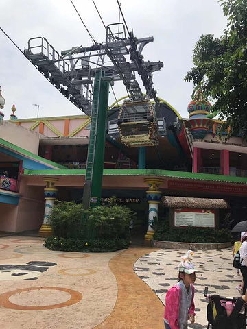 因为昨天下雨缆车停了,今天一进园就选择了缆车的游览路线,缆车还是南门进来走的比较近,走5分钟左右就能到。早上的缆车是绕园一周的。等做回来刚刚赶上11:30的单线路程开始,出来走一半看没人,我们就钻过栏杆去做单线缆车,做单线可以直接做的北门,下缆车就可以去做小火车。这样能节省体力,呵呵