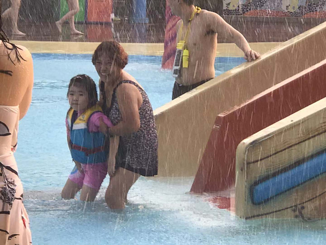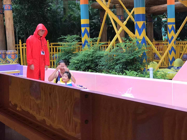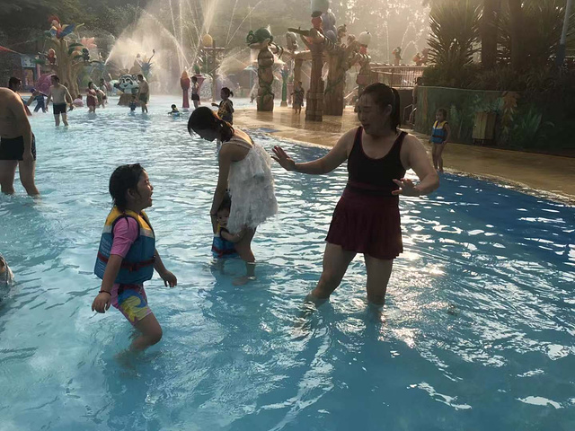 原本打算回酒店让北北睡一下,可是小朋友全无睡意,好吧,那我们就水上乐园吧,不能浪费了赠送的票啊。我觉得北北喜欢水上乐园比动物园还要多,计划失误,要是时间充裕,真应该在这泡一天~~哈哈哈。熊猫酒店离水上乐园很近,走路大概10分钟就能到。