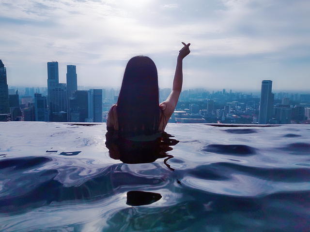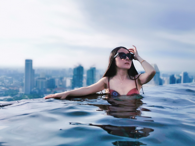 金沙酒店的造型是一艘船停靠在三根巨型柱子上,形成了非常稳固的结构,象征着新加坡的发展稳定。在金沙顶层57层全球最大的空中无边际泳池中自在畅游,俯瞰新加坡全景~~