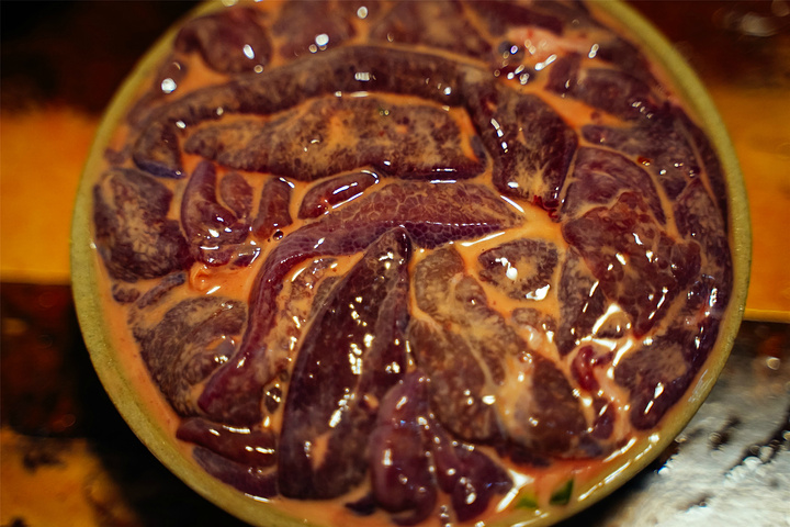 功夫猪肝,新鲜没有异味,下进牛油锅里腥味完全被锅底的香味覆盖,很嫩。