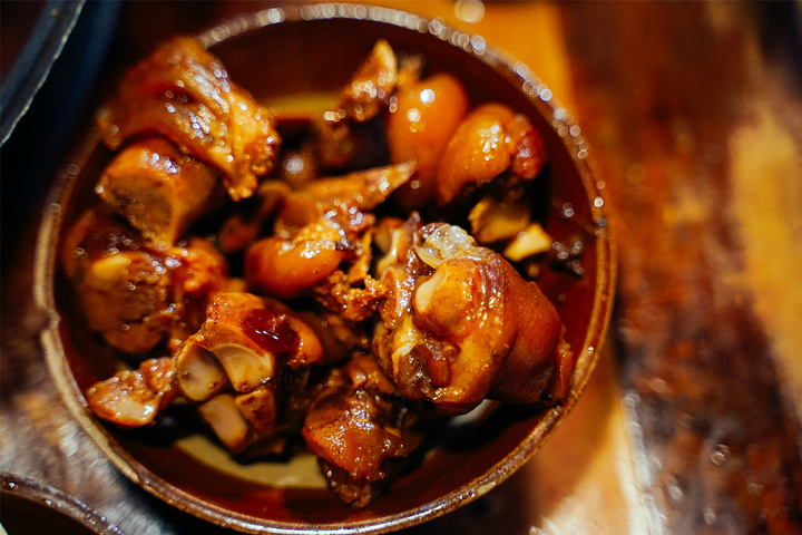 耙猪蹄,怎么会有这么软糯可口的肉质,肥瘦刚好,油脂细腻的口感还有卤的入味了软糯的肉质,轻轻咬开就能吃到满足的一大口肉,五香味的卤水,也有点甜。