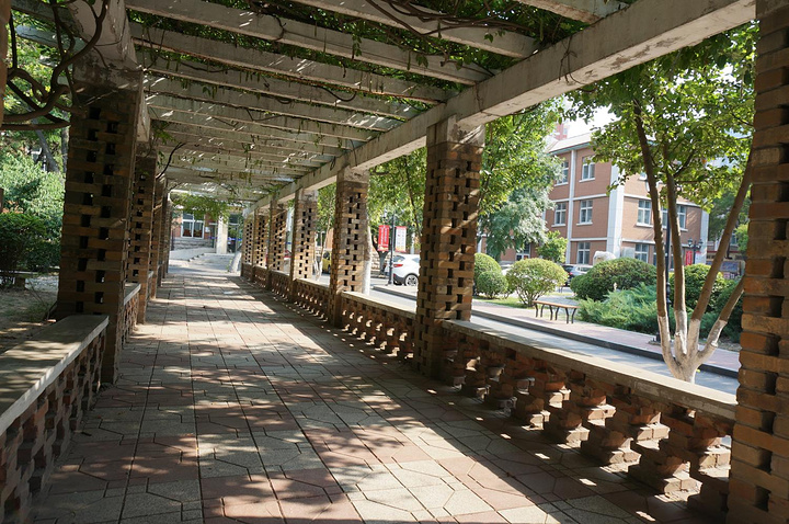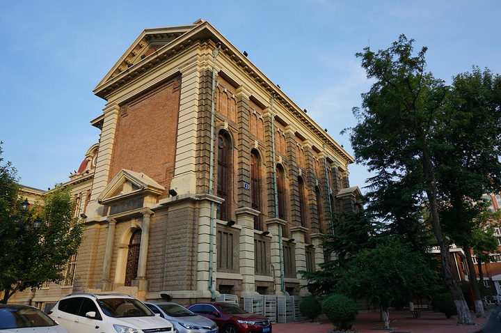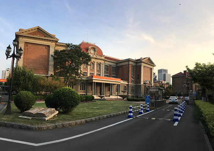 从马场道校门进入校区,一入眼便是始建于1925年的主楼,原工商管理学院楼,这也是天津外国语大学最出名的建筑。这座大楼外檐为大块蘑菇石墙面,曼塞尔式瓦顶,圆形大钟,为法国罗曼式建筑风格,富丽堂皇之中体现着庄重与严谨。主楼旁边还有一个小教堂,虽然处于封闭状态,但不妨碍它继续作为拍照圣地。主楼一侧伫立着北疆博物馆,它可是中国最早的博物馆之一,曾馆藏几十万件标本。五大道校区的教学楼几乎都是红褐色的建筑外檐,散发着古典、蕴藉的气质,因而来这里参观、留影也是非常好的选择。