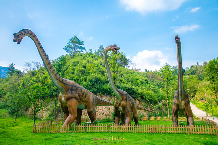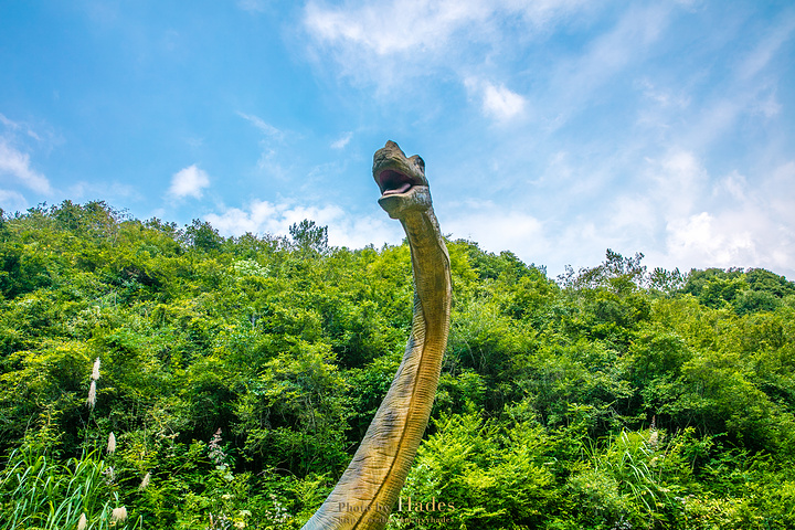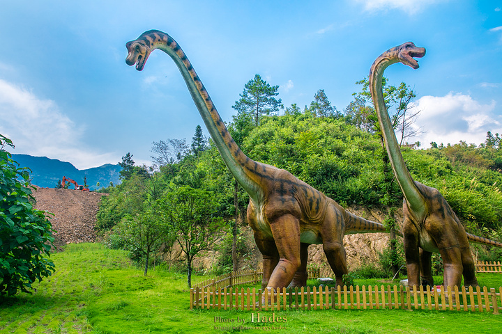恐龙谷绝对是座科技与自然结合的大课堂。在这里可以真切的感受到恐龙的巨大与神奇,更能学到很多有趣的古生物知识。看看这巨大的腕龙,注意画面左侧山坡上的重型挖掘机,对比下,就知道这三只腕龙有多大了!丰富的动作、逼真的表情,站在这些巨兽面前,真的宛如置身于奇妙的侏罗纪之中。