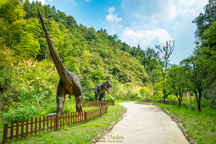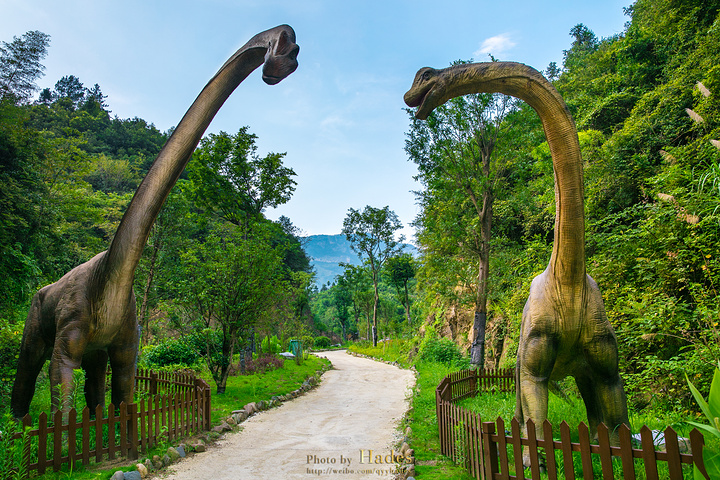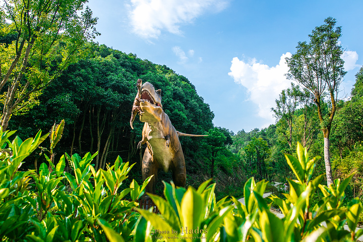 走过彩虹玻璃桥,在绿意浓浓的丛林之中,还隐藏着一处神秘的恐龙谷。恐龙谷的位置在景区之中可谓神秘而隐蔽。如果从9D玻璃桥那里乘花岗岩滑道下山,可以直达恐龙谷。走彩虹玻璃桥方向,则要穿过长长的风车长廊。