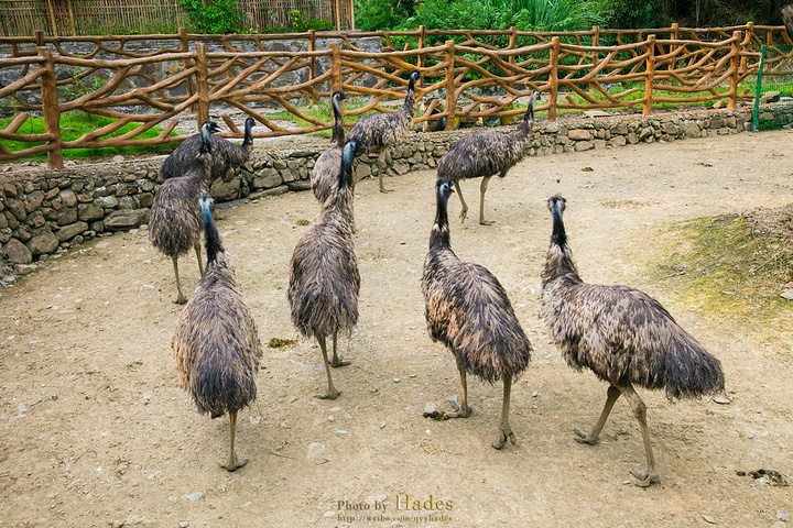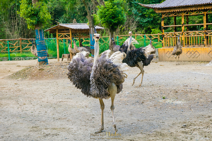 鸵鸟园中的大家伙热情好客,见到游客经常主动跑过来打招呼。这一群头染蓝色的大鸟,第一眼还以为是神秘的食火鸟,后来才发现原来他们都是鸵鸟宝宝。原来鸵鸟的亚成体居然如此原始科幻,不禁让人怀疑它们是从旁边的恐龙谷跑出来乱入的小怪兽!