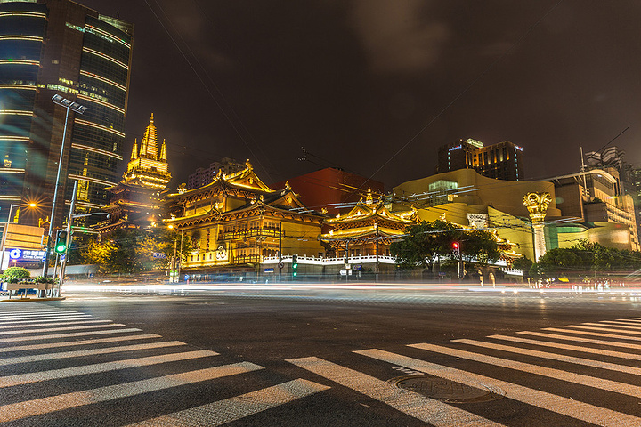 艾灸过后身体非常舒服,夜晚的微风也很清爽于是走路去看看静安寺的夜景