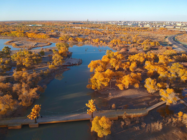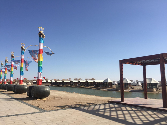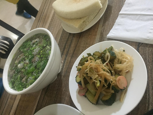 结束中午的行程回住宿的街上吃饭,吃完回去睡美觉。下午去到另一个胡杨林景区。大漠胡杨林景区和黑河城遗址处。他们两个景区是在一起的。师傅给我们推荐了一家开了10几年的吃羊肉的地方,在昨晚我们吃烧烤旁边不远,这个城镇不是很大,一个很小的县城,走路就可以解决问题的,买了一些水果,中午吃了羊杂汤,很好吃,不愧是10几年的老店,连续在他家吃了好几顿,那是越吃越不想离开这个地方,吃了爆炒羊肉,爆炒坨肉,味道绝了,太香了,现在想想都感觉自己想立刻去到那里点一份羊杂汤。下午睡醒后师傅开车带我们去了大漠胡杨林景区,那里有河流,胡杨树的叶子落的晚一些。回来以后去当地购买了一些特产,黑枸杞,红枸杞,纵容,锁阳。心想着买回来以后吃的,回来这么久了,除了红枸杞吃完了,吃了一些黑枸杞,纵容和锁阳还没有吃,送了一些给朋友。结束一天愉快的行程。