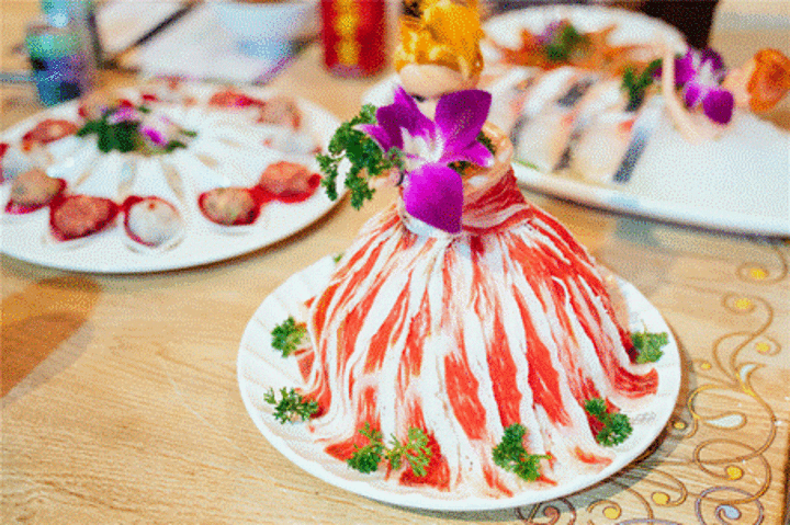店其他菜品表现也很不错,这个芭比肥牛必须提一下~造型新颖,颜值爆表,裙内是保鲜的冰块,裙外一层层的是肥瘦相间的牛肉,一片片拿起来有种撕开美女的裙摆的感觉,肥牛肉质新鲜,脂肪刚刚合适。