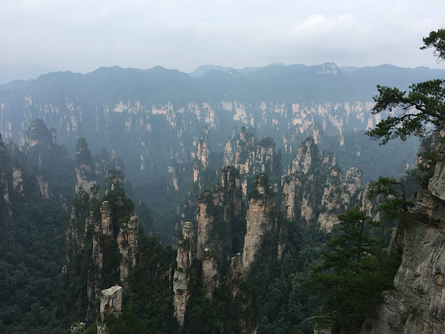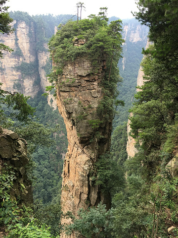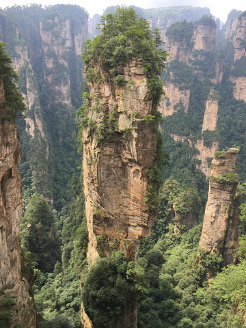 昨晚住的青旅没想到是个导游的圈子,特意问了下怎么玩人少,美女给的意见很有用。本来想百龙电梯上,可是美女说人家都是5点多就去排队的,我想还是算了吧,百龙电梯下吧。听美女的,一早7点多走天子山索道上,哈哈人真的很少,我一个人坐一个包间,感觉真爽。上去后去贺龙公园,景色都在一块的,好几个观景台,在观景台上可以近距离的看各个山头,不过象天女散花呀这些还是感觉太远了,只能远远的感觉一下,要说一下,一定 要上天子阁,这里可以远眺,御笔峰和天女散花在这里都可以看到。