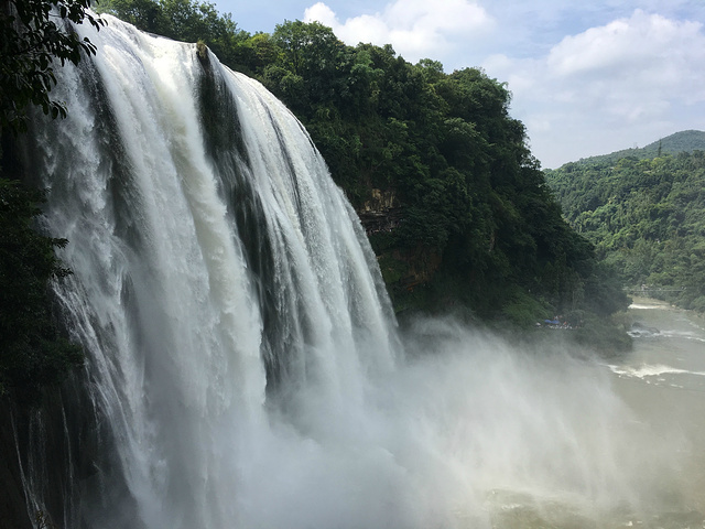 到了已经8点多了,避开人流是不可能的了。提醒一下,进去先买个雨衣,在丰水期,你站在瀑布的正面,水花会弄湿你全身。排队的人挺多的,黄果树的票要提前一周订,在景区刷身份证,不用取票。排队坐车,一定要先去黄果树大瀑布,8点多进去人已经很多了,排了两个多小时才到水帘洞,一路上有很多人半途回去了,出来玩就要把该看的都看了,有些等待是必须的。看到大瀑布的一刻,还是挺震憾的。其实瀑布的最佳观赏点,后来发现是在观光车上,可以拍到全景。其它的两个景点都不如黄果树好看,天星桥要走好多路,累的不行。