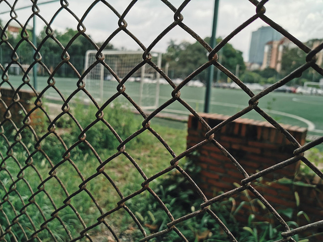 园区的足球场,当天里面还有一群被外教带出来带出来上体育课的小孩。