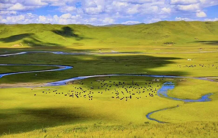 在阿坝县曼扎塘湿地大草原,绿草茵茵、牦牛成群、山花开遍,这里原始古朴、是长江、黄河重要水源涵养地和生态功能保护区,有着“地球之肾”的美誉。盛夏时节,正好来此享受最清凉的慢生活悠闲时光。