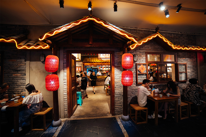 到了地点被门口的装潢就惊艳到了,古风的大红灯笼高高挂,配上仿古的屋檐,江湖环境感一下子就出来了。