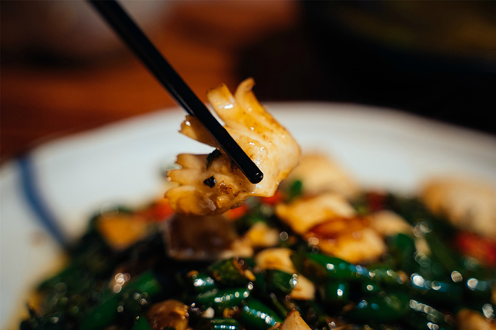 【草包牛肉】搭配各种辣椒非常辣,我看菜单的时候以为是凉拌菜,结果是热菜。一筷子下去,夹杂着辣椒一起吃,很下饭。里面还有豆干。咬一口豆干,满口的豆制品香气和辣椒的香气混在一起,斯~虽然有点辣但是也太好吃了吧。