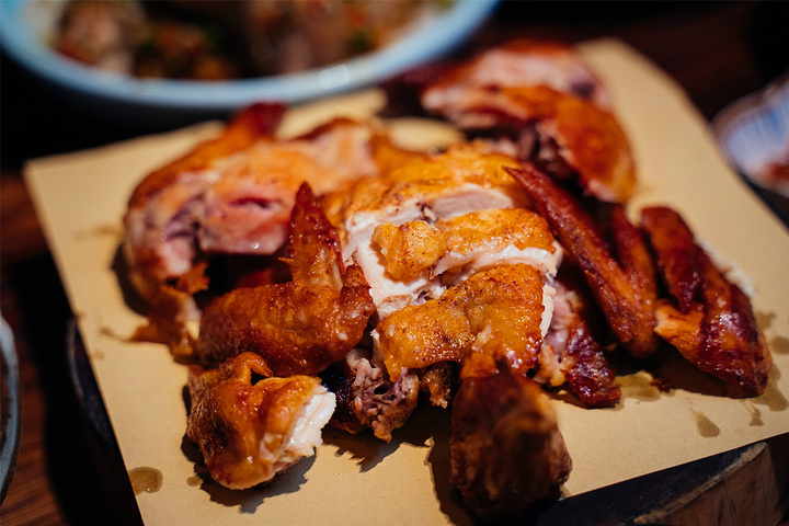 【烤鸡】酥皮香而不腻,肉非常紧实,表面又是酥酥脆脆的。咬一口嘎吱嘎吱,一大口肉配米饭,让油脂香味浸润到饭里面~香 我们点完了,等了有点久,不过很值得!!!