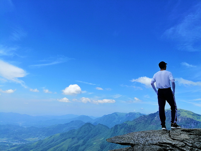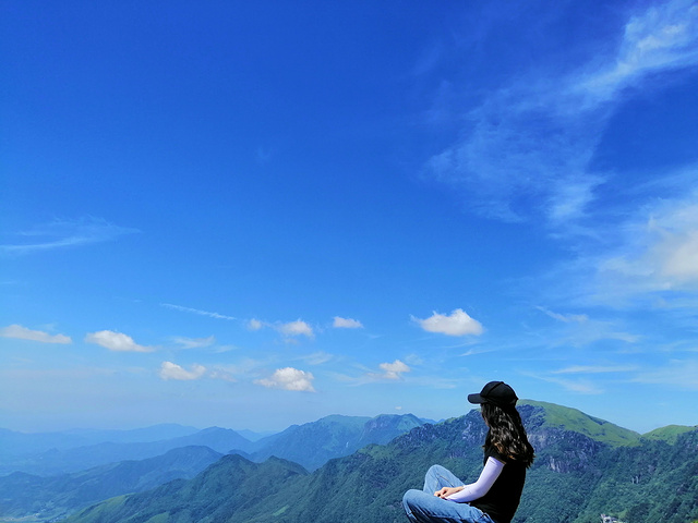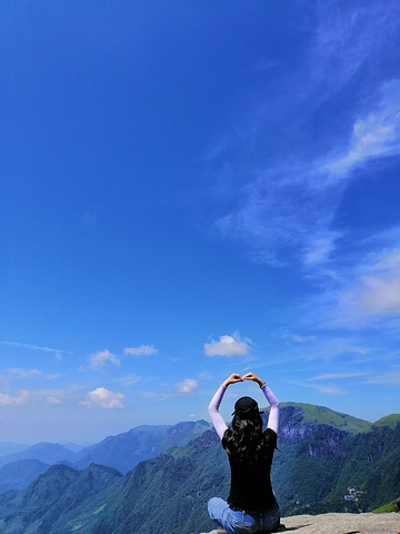 我们是从武功山的一条登山路线,不是从景区坐索道。登山路线很陡,很难爬,这是在半途休息的时候。景色已经很美了。