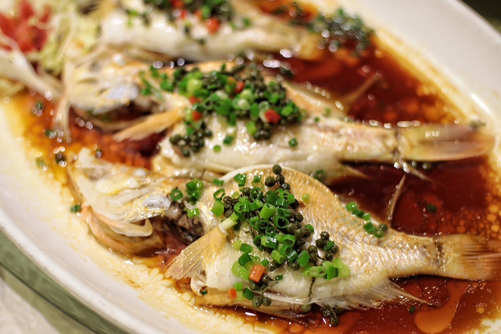 还有炸鲈鳗鱼、黄金斑、白贝、草虾等一盘一盘应接不暇的海鲜等着你动筷子。