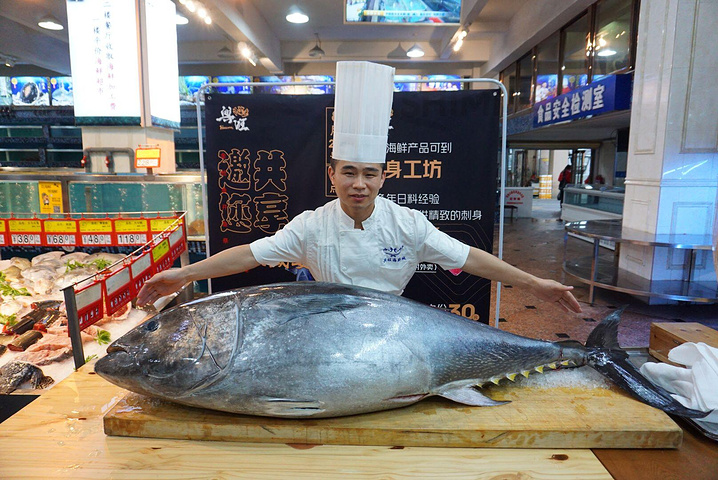 刚靠近就听到里面传来的欢乐声,走进一看,居然是庖丁解鱼盛宴!才刚在日本捕获一条180公斤的蓝鳍金枪鱼,隔天就马上空运到兴旺海鲜城厨师的案板上了。
