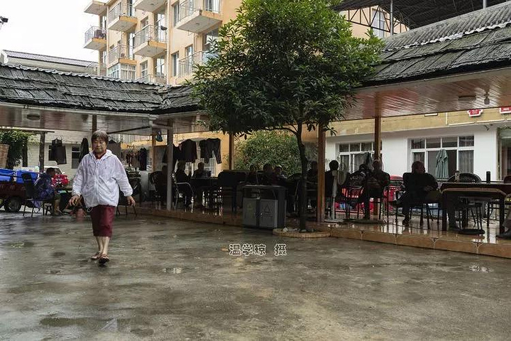 五点左右,“宋二姐”来叫我们去吃饭。就在这里,这是下寨有名的“享福楼”,亭子里坐着不少游客,这里洪水来时很安全。
