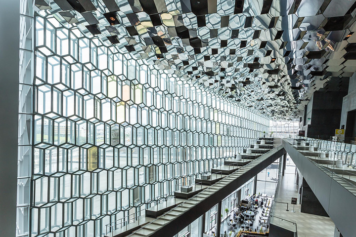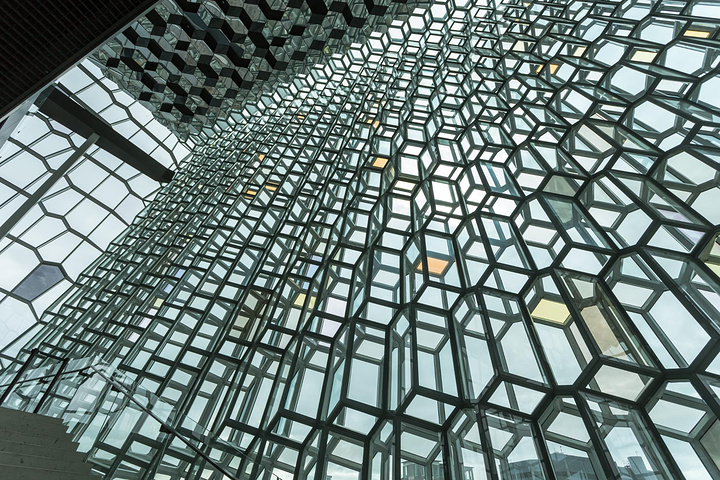 哈帕音乐厅,位于首都的海陆交界处,对着雷市的旧港,是冰岛最新最大的综合音乐厅、会议中心,建筑设计的灵感来自冰岛冬夜神秘莫测的极光和火山石的形状,它的外层是一整幅大玻璃墙,阳光照射之时,它们就像一颗巨大的钻石,闪耀出万千颜色。这些玻璃多是不规则的,不同的季节和天空下,展现的景象也是千差万别,就如同一个巨大的万花筒。《纽约时报》在2011年将其评选为全球最值得旅游的41个地方之一。音乐厅入口处,有几家极具设计感的礼品店,推荐在这里购买手信