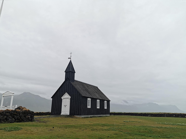 斯奈山半岛的明星景点布迪尔黑教堂,是冰岛最古老的木教堂之一,最早建于1847年,后经历了不断的被毁与重建,现存的建筑体是上世纪80年代重新修整过的