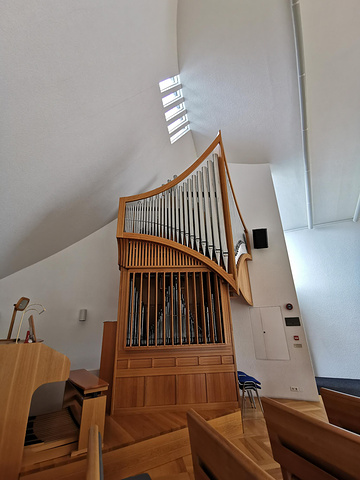 到达教堂内部,可以看到巨大的管风琴,高15米,重25吨。还可以乘坐电梯到达顶部观景台,欣赏整个雷市,色彩斑斓的屋顶,群山环绕的城市