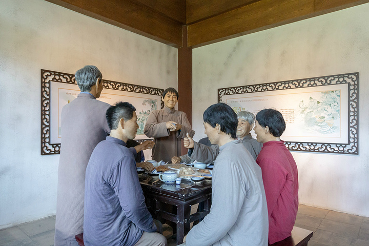 高沟酒文化馆如同静谧的农家小院一般矗立在景区之中,走进文化馆,仿佛走进了四合院一样。文化馆中为我们展现着当地的酒桌文化,推杯换盏之间尽显邻里乡情。高沟酒文化馆还通过雕塑让我们看到了勤劳朴实的淮安人,是如何将美酒运往各地的情形。