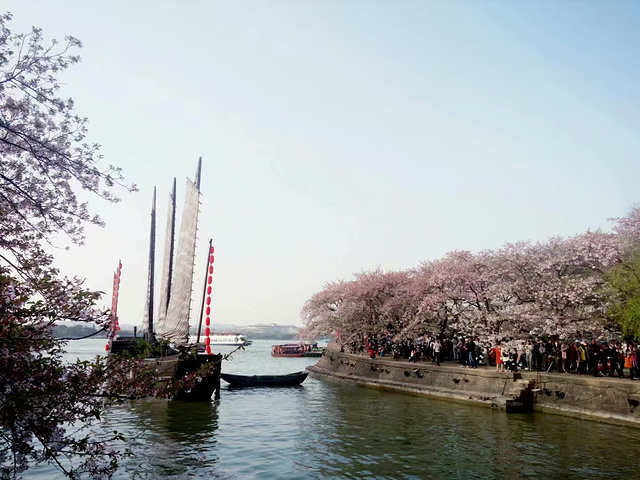 酒足饭饱之后,来了心心念念的鼋头渚。要不是来无锡,我还不认识这个字。来,跟我念,鼋(yuan)头渚,2声,又有文化了。樱花花下肥腻男,一进门就一屁股瘫在了地上,唉,人到中年,不服老不行呀。