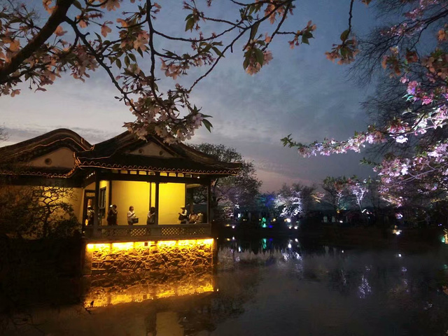 之后,尽管坐了观光车,也没缓过神来,我们真真的是倒在了草坪上几个小时,等待夜幕降临,我好点,中间还有动一动,老林决对是一动也没动。夜樱,美吧!
