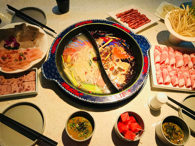 我们去的是刘一手,比较适合我们这种不吃辣的人,还去了佩姐老火锅,微微辣,也得用三碗水涮才能吃。