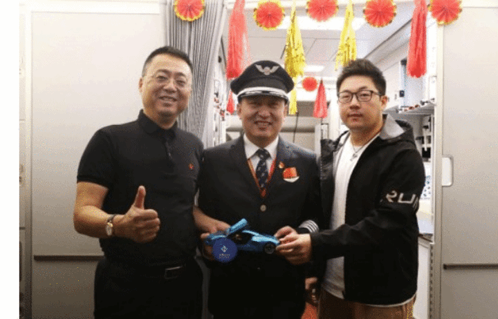 北京大兴号首飞成功,华夏出行工作人员与机组人员合影留念