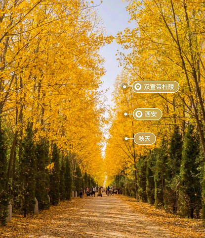 杜陵(汉宣帝陵)相比大雁塔、小雁塔在各大旅游攻略上几乎没有存在感,但秋季这里的景色可谓一绝。大片大片的金色秋景配上不过分雕琢的景区痕迹,让你不出西安就能体验到自然绝美的景色。