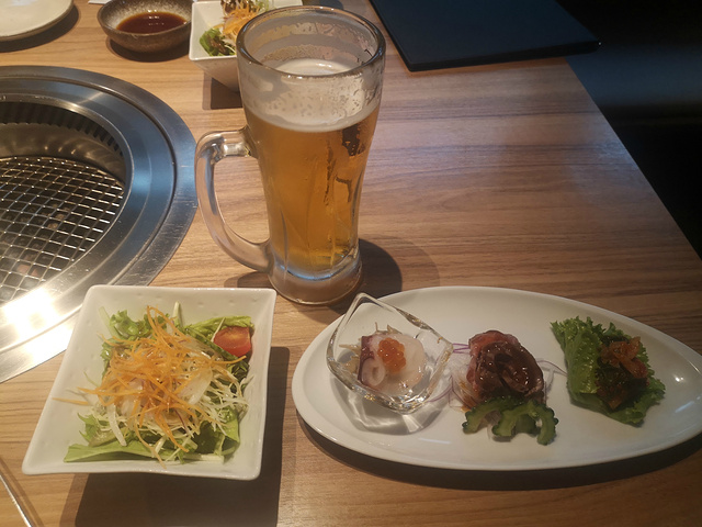 石垣的牛肉很有名的,我们在网上找了一家评价最好的,招牌套餐里包括了这么多东西(除了啤酒是另点的),其中有七种不同部位的牛肉,每一种都很嫩,特别适合我这种牙口不好的,另外顺便说一下,苦瓜也是当地特色蔬菜。