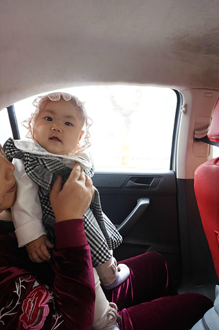 兴奋地在车里蹦跶,跟小姨躲猫猫~