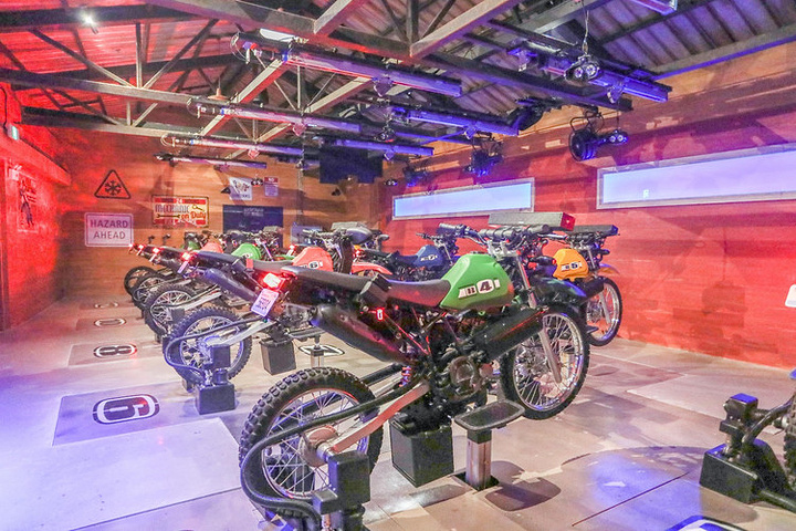 在这里,会骑上摩托车,带上3D眼镜,在虚拟世界里进入到吸血鬼的世界当中。游戏的主题是和狼人一起与吸血鬼战斗,摩托车可以自己操控,可以加速,可以控制不同的方向。在黑暗的世界中,狼人会伴随着游戏者一起,战胜吸血鬼。