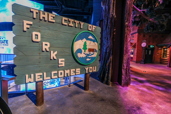 场景由实景摆设和裸眼3D电影构成。坐着小火车进入其中,仿佛重温了一次暮光之城的故事。