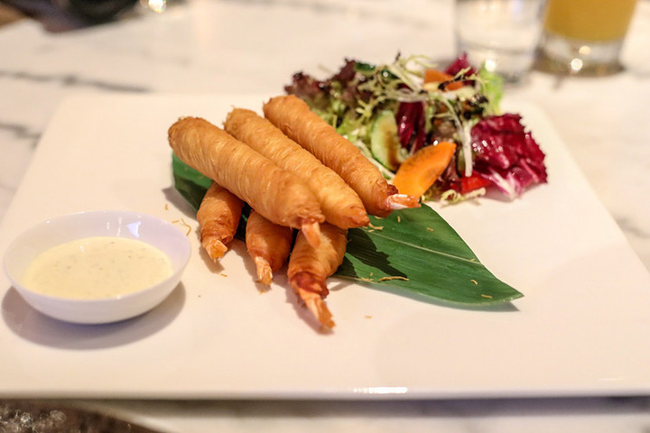黄金虾 新鲜的虾肉裹上炸粉炸至金黄。外皮酥脆,包裹着的虾肉爽口鲜甜,两种不容的口感融合得非常完美,而且层层递进的丰富口感也非常美味。