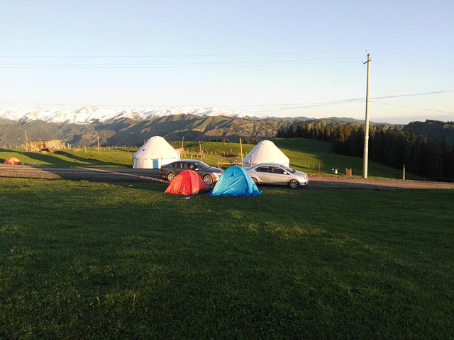 这是我带老婆儿子第二次在江布拉克露营,这一片房子是景区最深处修建的农家乐。不远处就是2017年6月9日我们来这里第一次的露营地。上传一组当时的照片。
