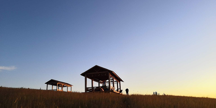 这次寻觅到了这处刚刚建成还未启用的游客服务区,总共有三个这样的亭子,还有厨房、公厕等一些必要的设施,周围用木头给围了起来。