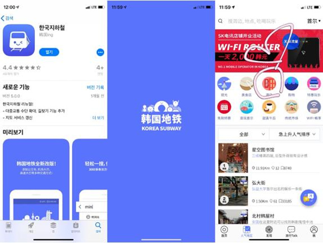 那么就要提前订酒店,很多人可能都会选择直接在携程或者一些国内的订酒店网站来预约房间,但是我一直在韩国,我发现国内的酒店预订App很多情况下不可以退房,折扣率也没有韩国本土那么大,而且很多酒店是不包含早餐,也不可以利用一些酒店设施的。所以我一直在有一个全中文的韩国酒店预订App,名字叫作韩国地铁,是个蓝色的小图标,大家可以在手机的应用商店里下载,长这个样子: