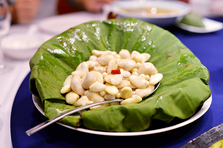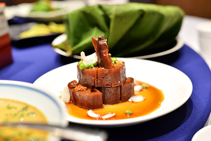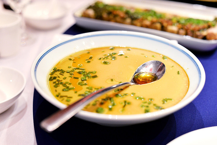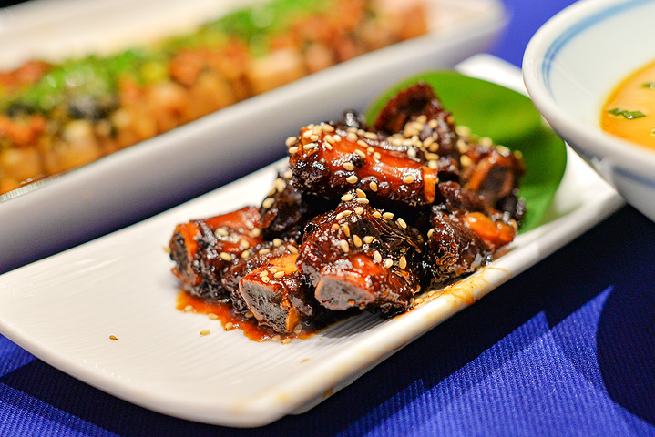 招牌的新梅华烤鸭基本每桌必点了,一鸭三吃,鸭皮蘸糖,鸭肉卷饼,鸭架烧汤或者是炸过后做椒盐,都很好吃。