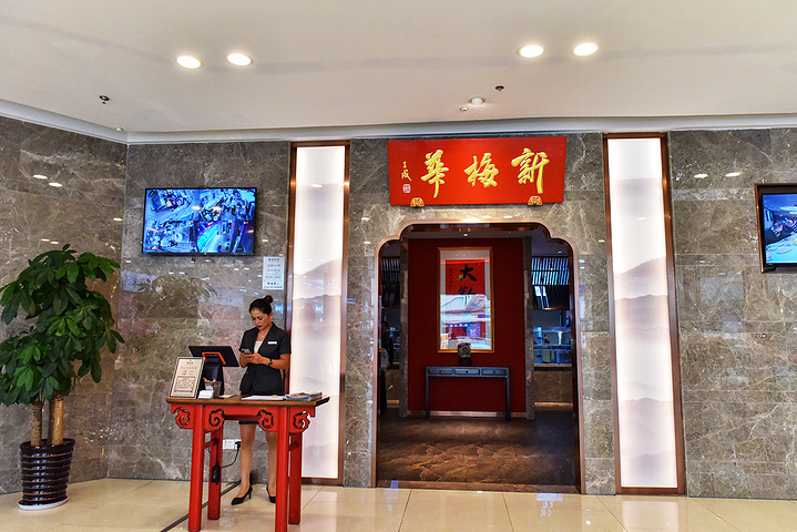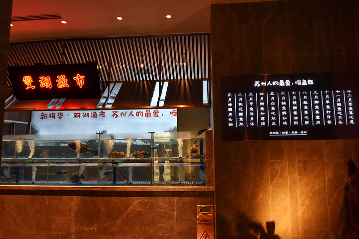 吾悦广场是个商场,除了海洋馆,里面各种吃的玩的用的也都一应俱全,午餐我们选择了广场三楼主打苏帮菜的老牌苏州餐厅新梅华。餐厅装修风格也很江南风,走淡雅清心范儿。