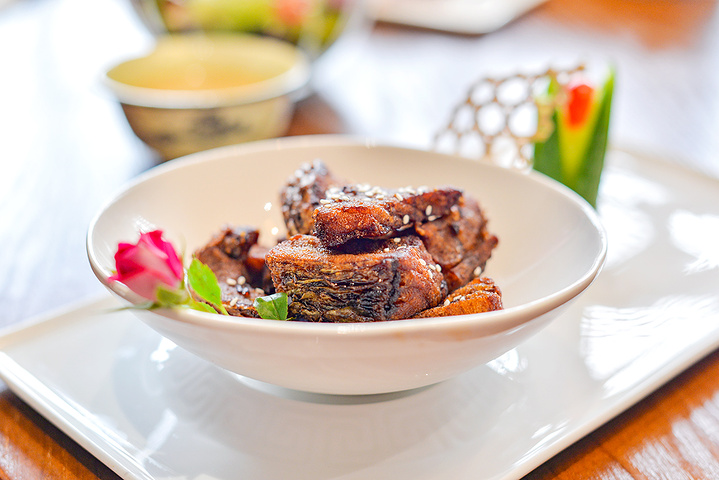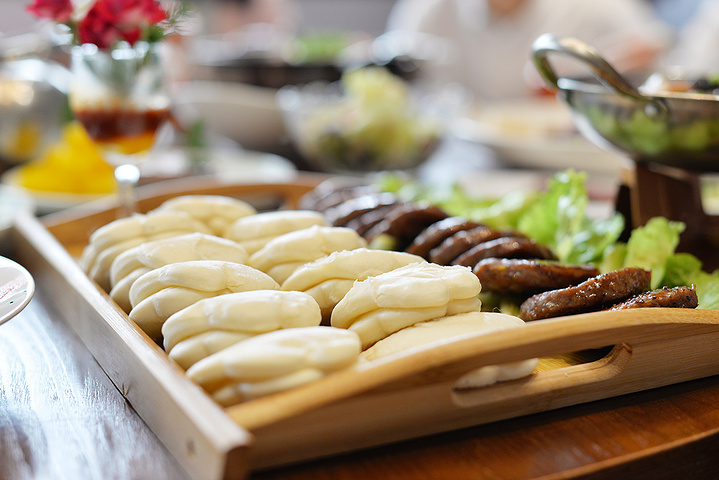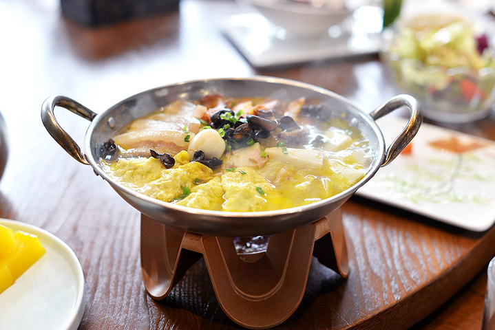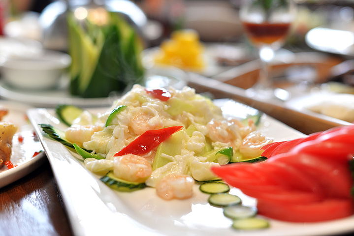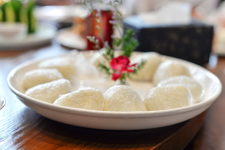 榜眼酒家是恬庄老街门前路边的店子,门脸不大,进去的大堂也就普通风格,待穿过大堂间却突然豁然开朗,内厅面积不小,最诱人的是厅外,有露天桌椅,有小河,更舒服的是,还有小河两岸的无限风光。