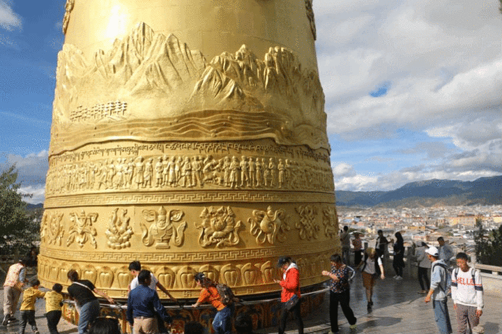 推着它顺时针转动三圈,算是不枉此行了,不过不愧是世界之最,转经筒总共重量达到60吨,没有十几个人一起推的话,真的很费劲。