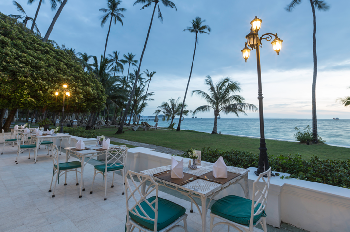 顺着酒店客房旁的蹊径直下到达海滩,首先映入眼帘的不是大海,而是开业于1988年的Cape Panwa Hotel 海角攀瓦酒店Panwa House 餐厅。这间中葡式的两层建筑设有内外两个区域,建筑以白色调为主,窗户和门为绿色,在这里用餐好比是在自己家中一样舒适,安达曼海的美景尽收眼底!